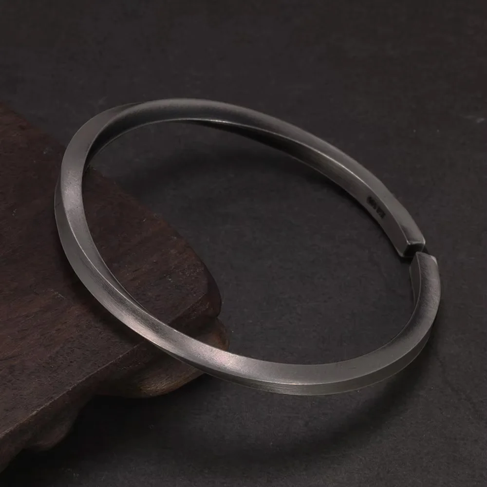 ↑925 Sterling Silver Twisted Cuff gelang untuk pria dan wanita Vintage Punk Rock gaya Thai perak perhiasan bagus - TopDealBox