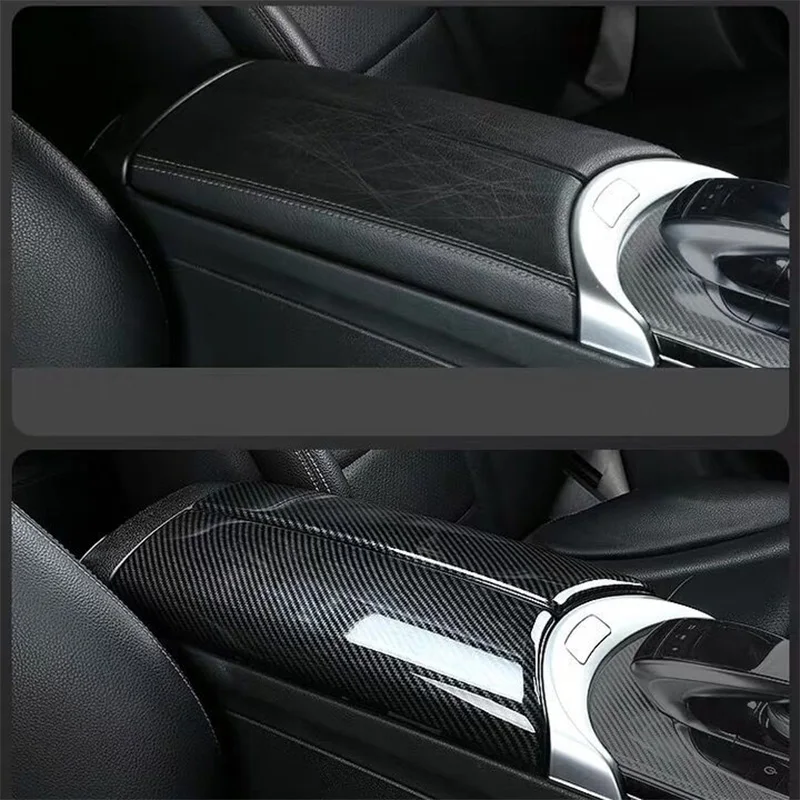 ↑Baru penutup Panel kotak penyimpanan mobil serat karbon kotak sandaran tangan untuk Mercedes Benz Kelas C W205 GLC X253 penutup konsol tengah Desember - TopDealBox