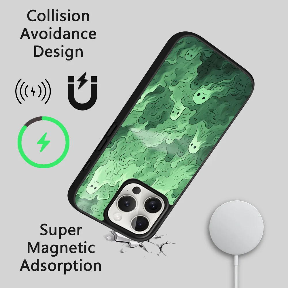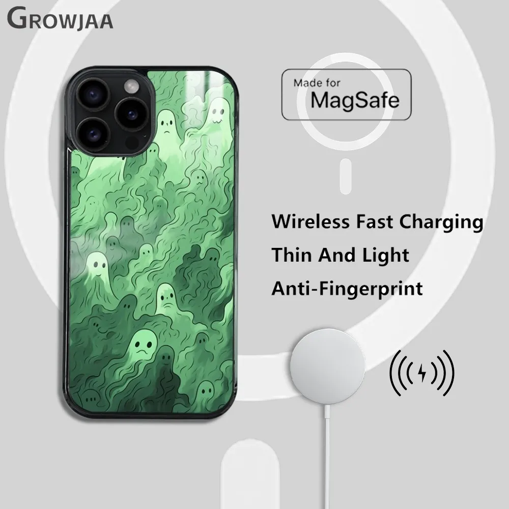 ↑Casing ponsel hijau hantu Magsafe lucu, penutup magnetik nirkabel cermin tahan guncangan Mini untuk iPhone 15 14 13 12 11 Pro Max Plus - TopDealBox