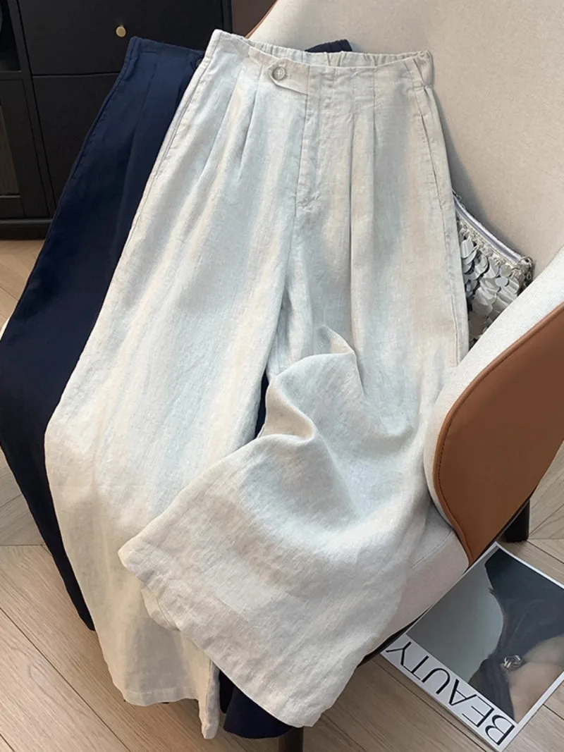 ♡Lihat KilatCelana Kaki Lebar Elastis Rami & Sifon Berlipat Solid Wanita Musim Panas Celana Kulot Longgar Kasual Pinggang Tinggi Liburan132612.51 IDRPanas