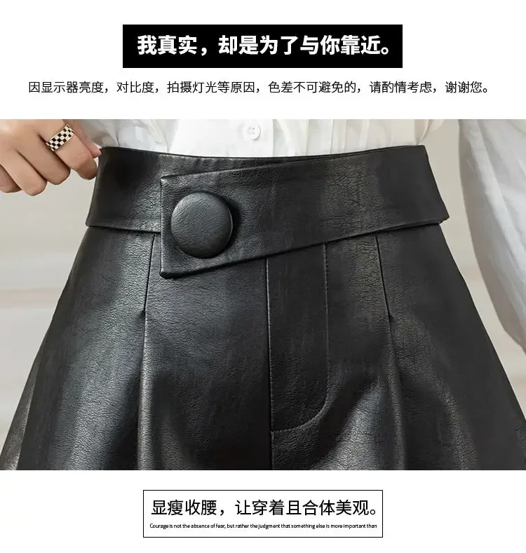 Celana Pendek Kulit PU untuk Wanita Di Musim Gugur dan Musim Dingin Gaya Baru Celana Boot Luar Kaki Lebar Serbaguna Pelangsing Pinggang Elastis XT1267 - TopDealBox