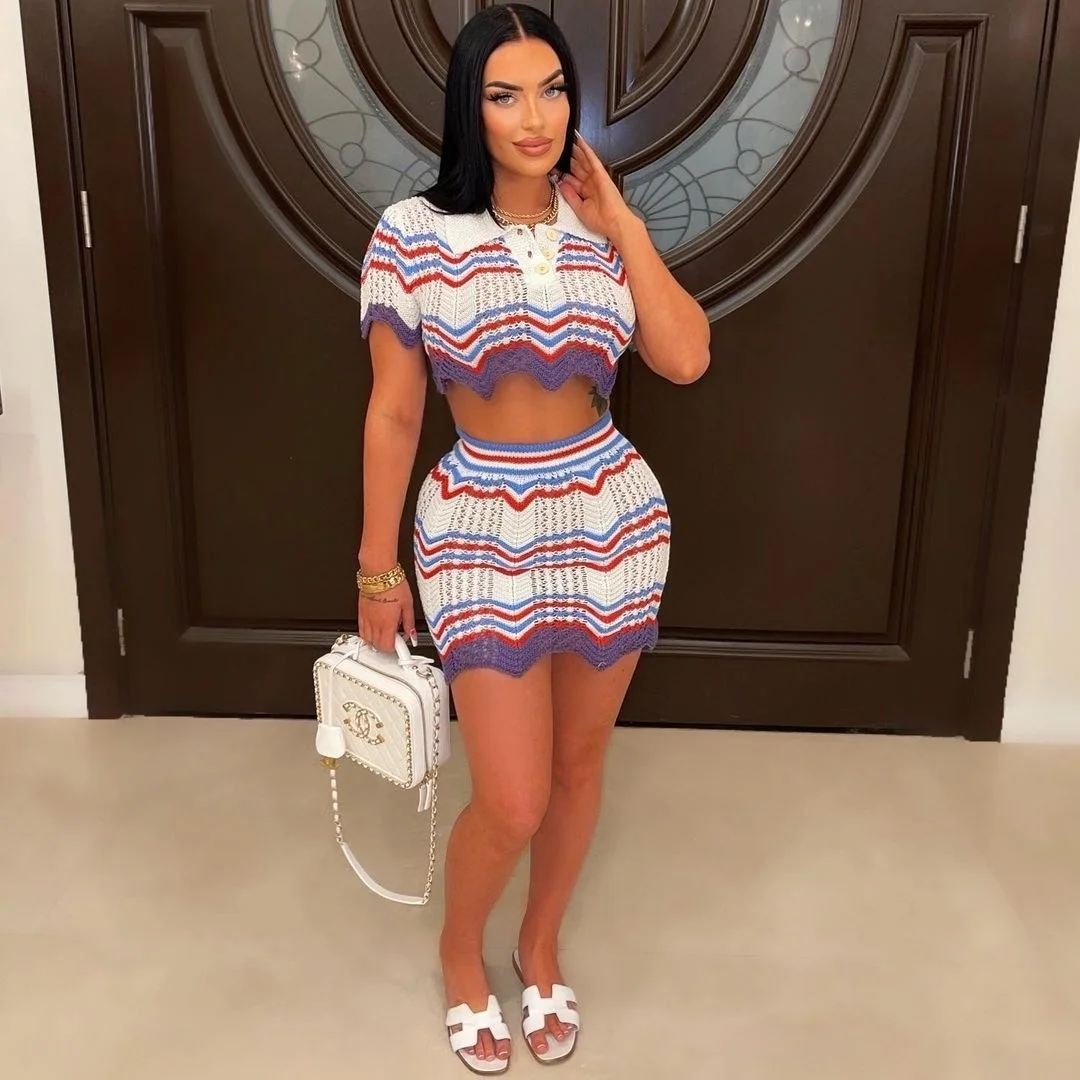 ♡Lihat KilatCutubly wanita musim panas 2023 Ribbed pakaian rajut mode 2 potong set lengan pendek kaus O-Neck dan rok Mini Bodycon berlipat Y2K613333.14 IDRPanas