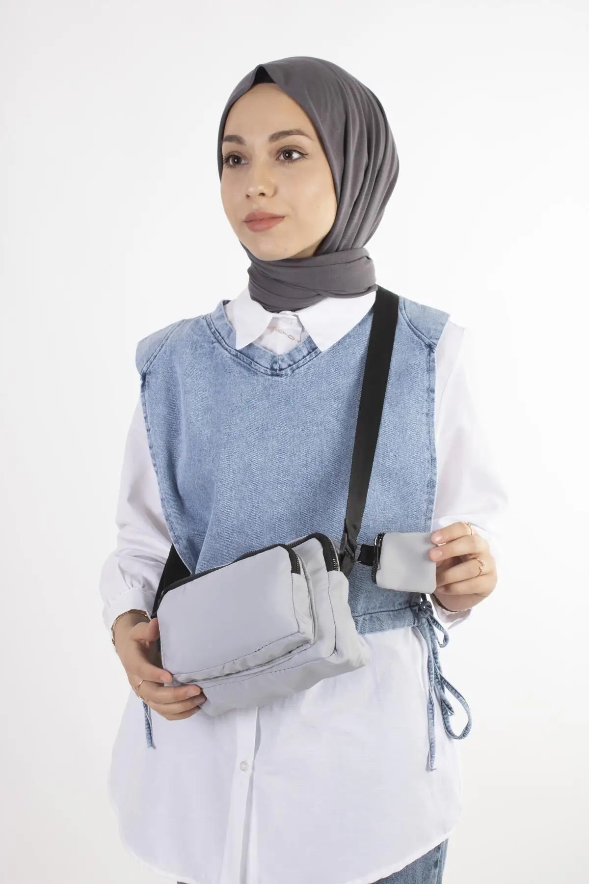 Dompet Wanita Tas Bahu Rinci Kualitas Tren Fashion Abu-abu Tas Musim 2022 Wanita Muda Panjang Pendek - TopDealBox