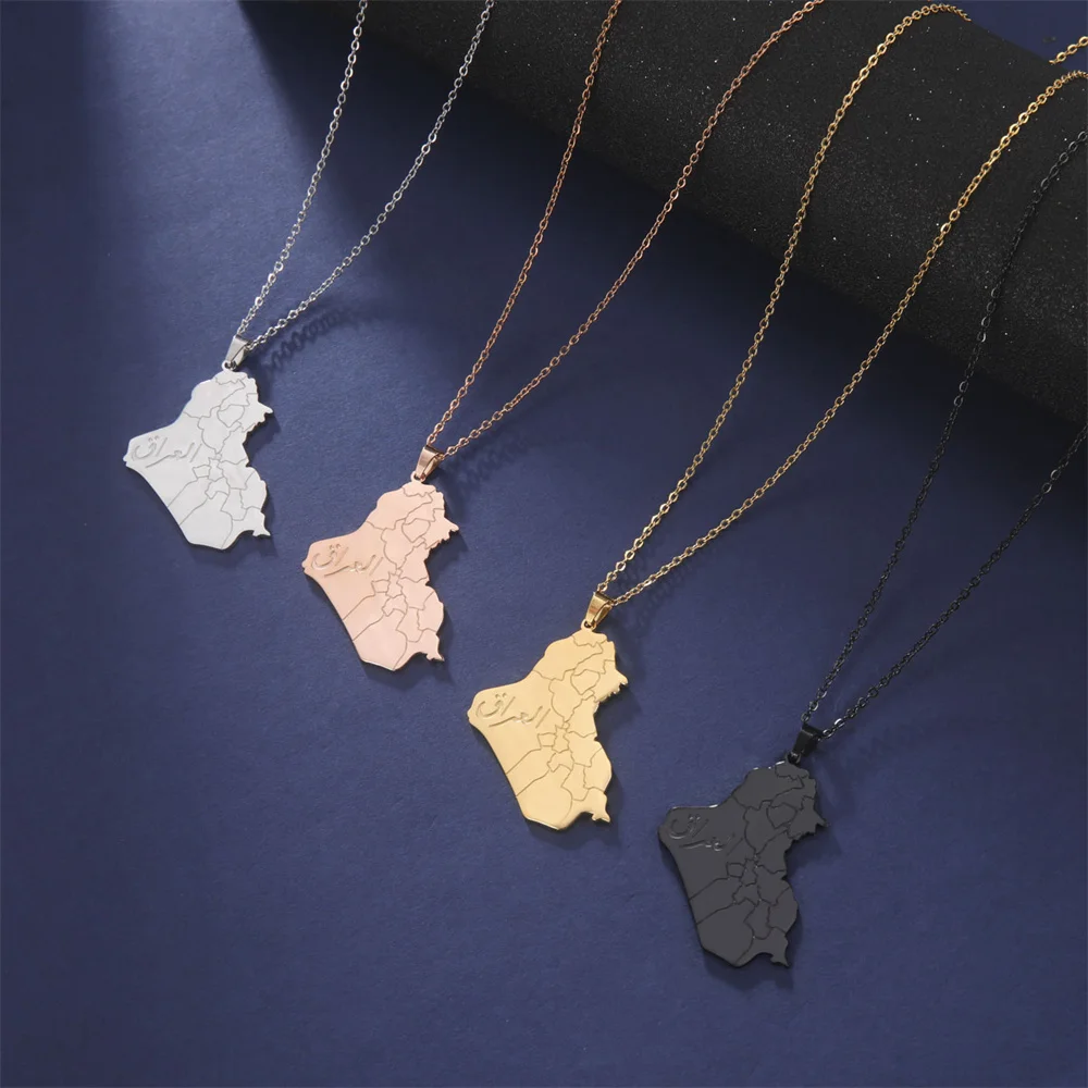 ↑EUEAVAN Republic Of Irak Map dengan kota nama liontin kalung baja nirkarat antik geometris negara perhiasan etnis hadiah - TopDealBox