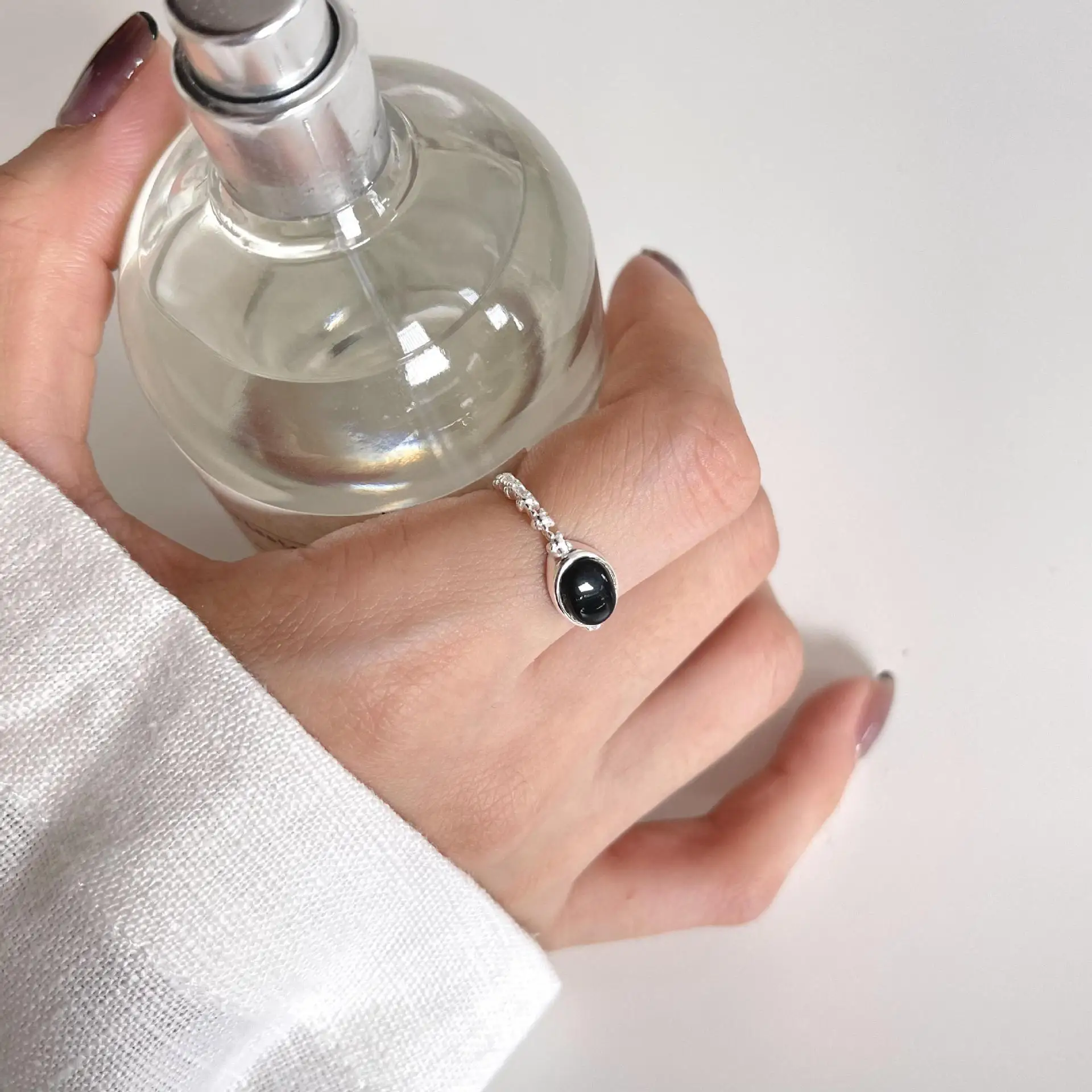 β‘Lihat KilatNyata. Autentik 925 Perak Murni Tekstur Tidak Teratur Cincin Batu Akik Hitam Oval Perhiasan C-J1666112060.41 IDRPanas