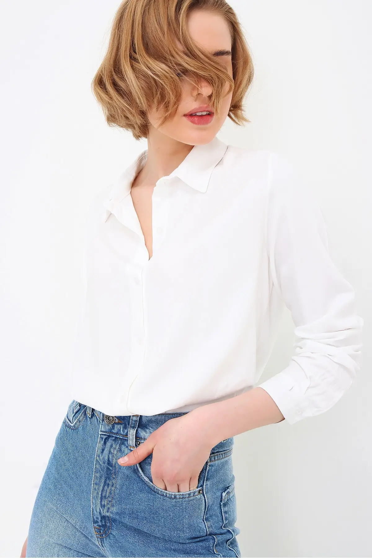 ♡Lihat KilatKemeja Poplin Crop Lace-Up Biru Wanita Tren Fashion Wanita ALC-X6039 Musim Baru Berkualitas Cantik758589.00 IDRPanas