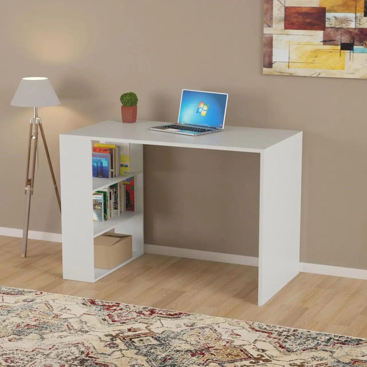 Meja Belajar dengan Meja Komputer Partisi Rak Buku Meja Siswa - TopDealBox