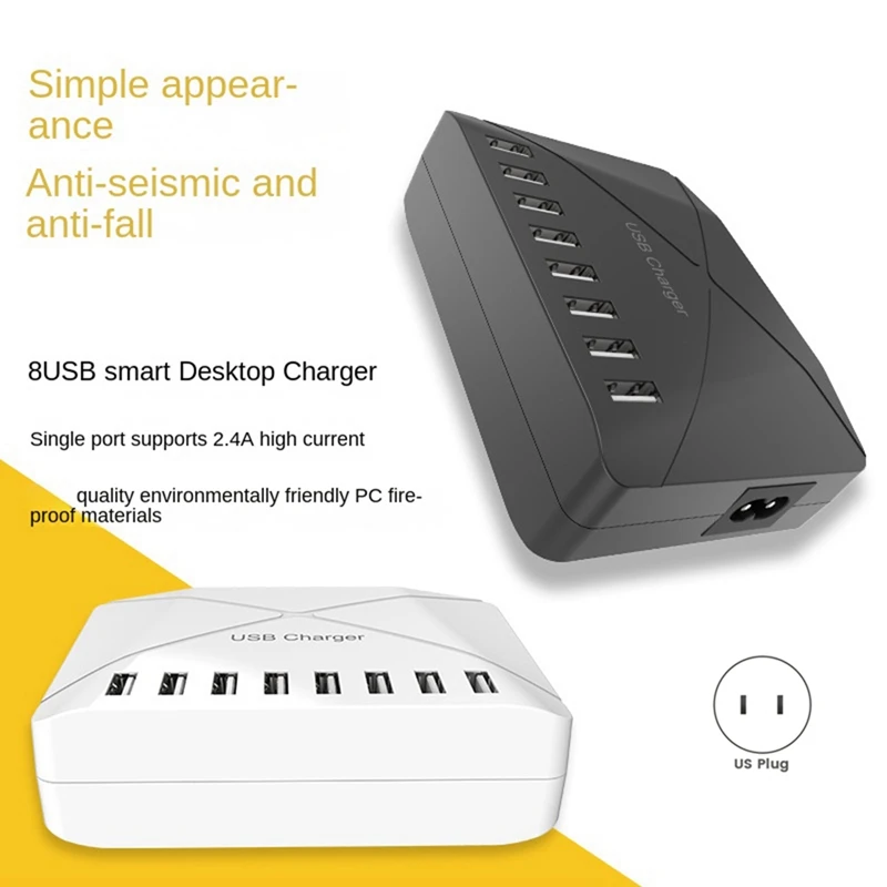 ↑Pengisi daya Desktop Multiport USB 40W, isi daya Cepat Dok pengisi daya 1 buah colokan US putih - TopDealBox
