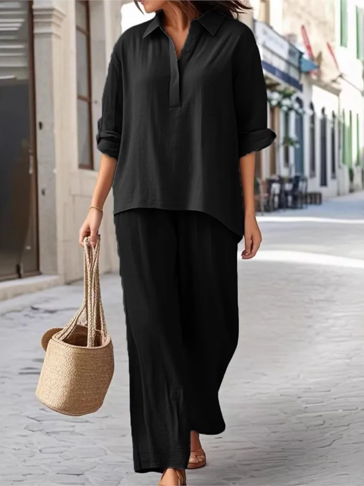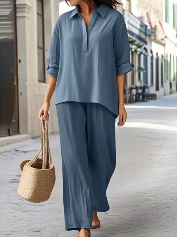 ♡Lihat KilatSetelan baju kantor wanita, atasan lengan gelembung warna polos dan celana kaki lebar kasual Single-Breasted dua potong487924.00 IDRPanas