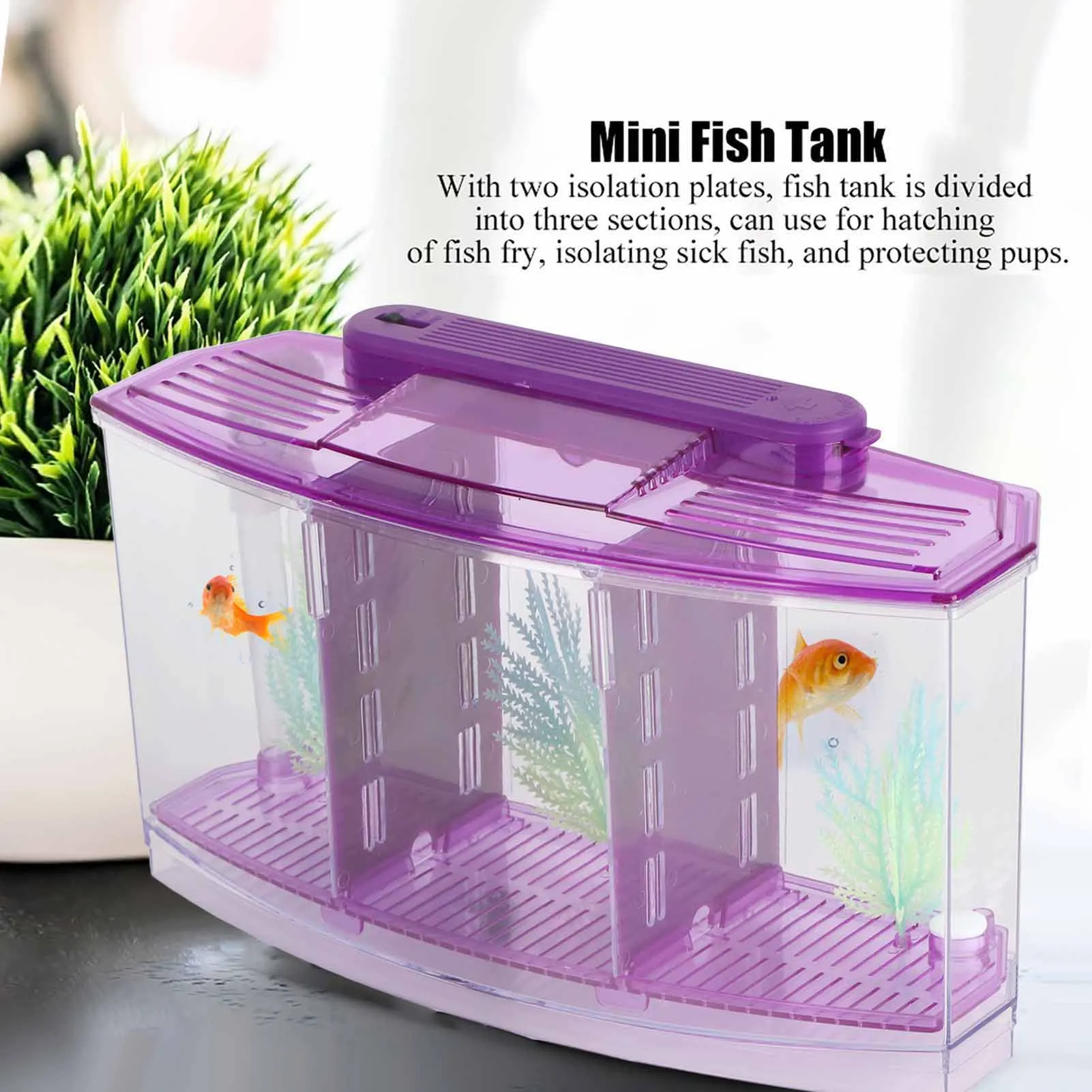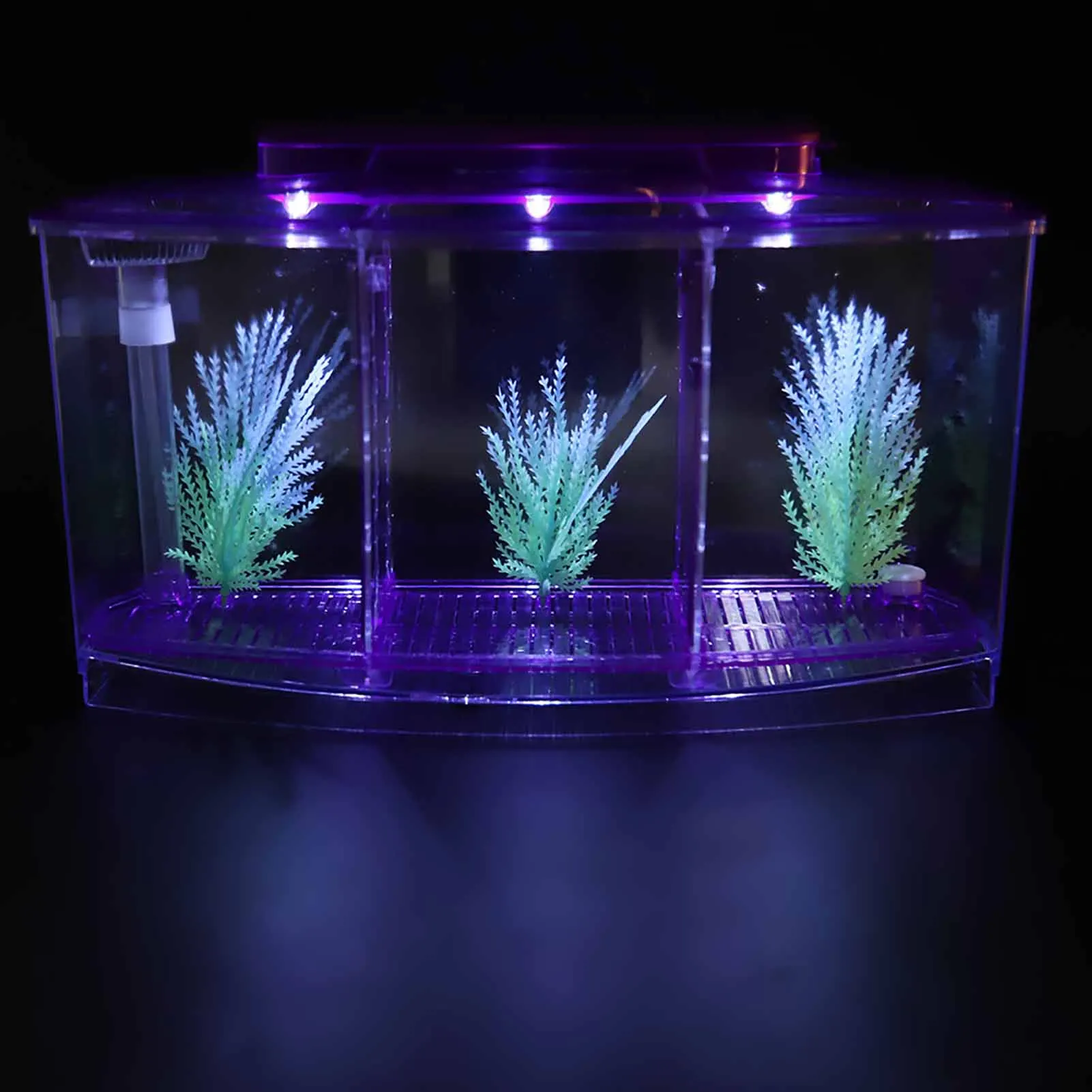 ↑Tangki Ikan Akuarium Mini LED Akrilik Tiga Divisi Kotak Isolasi Pembiakan untuk Ikan Kecil - TopDealBox