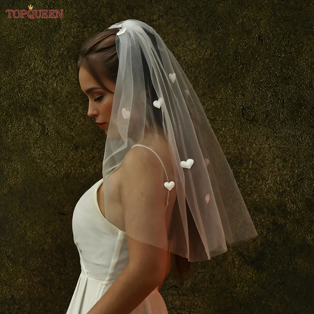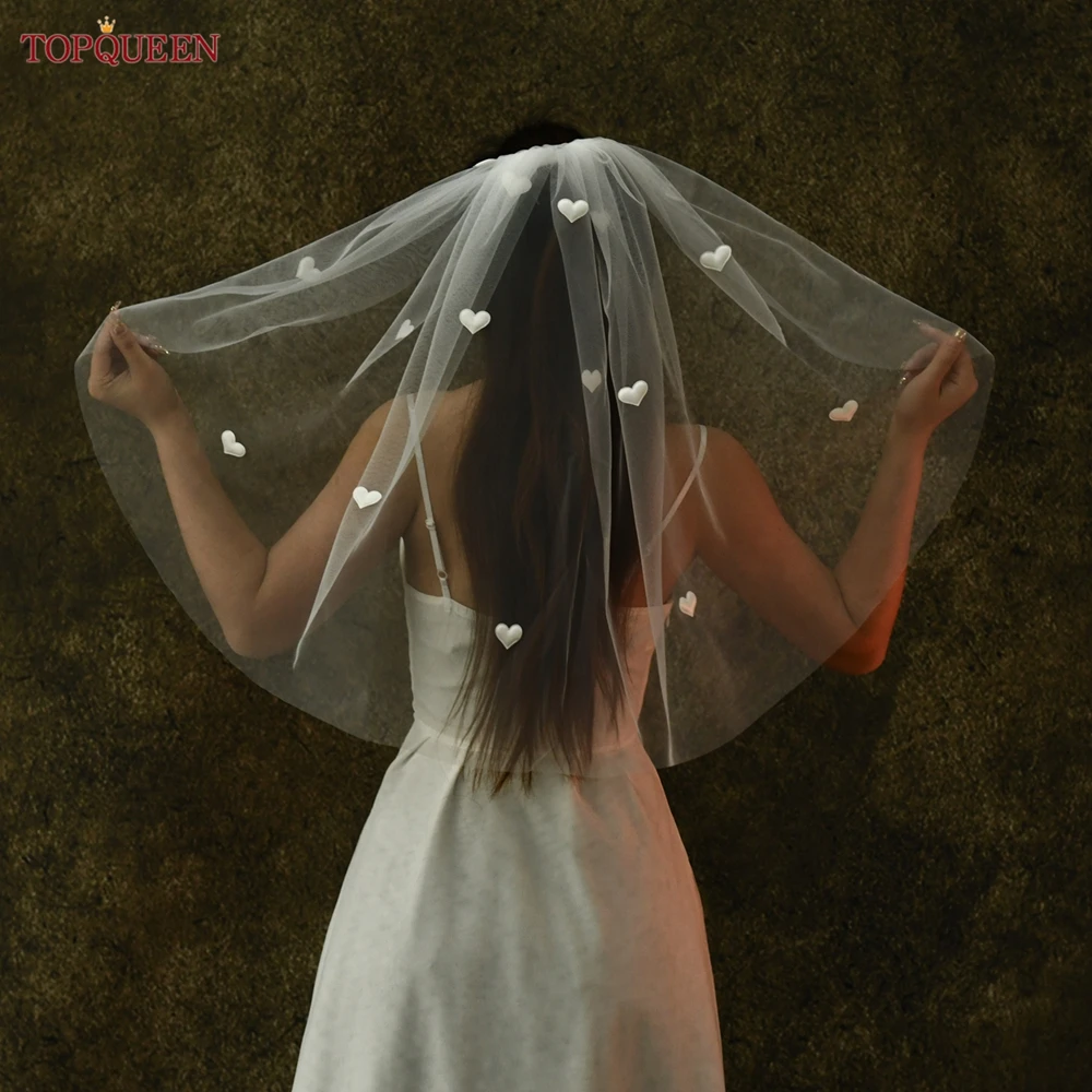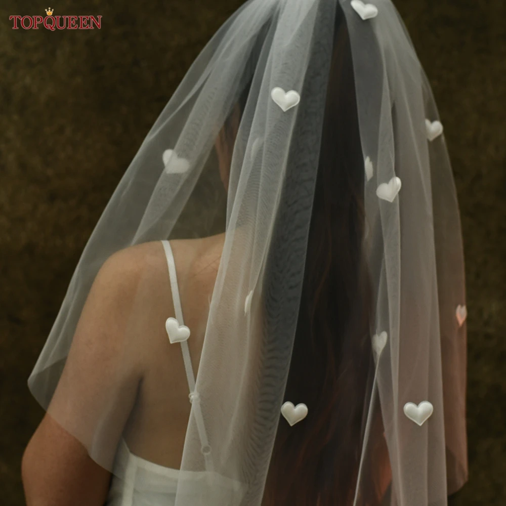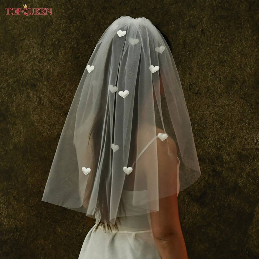 ↑TOPQUEEN Kerudung Pernikahan Cinta Putih Pengantin Super Lucu Panjang 60Cm Lapisan Tunggal Putih Susu Putih Sampanye Dapat Disesuaikan V272 - TopDealBox