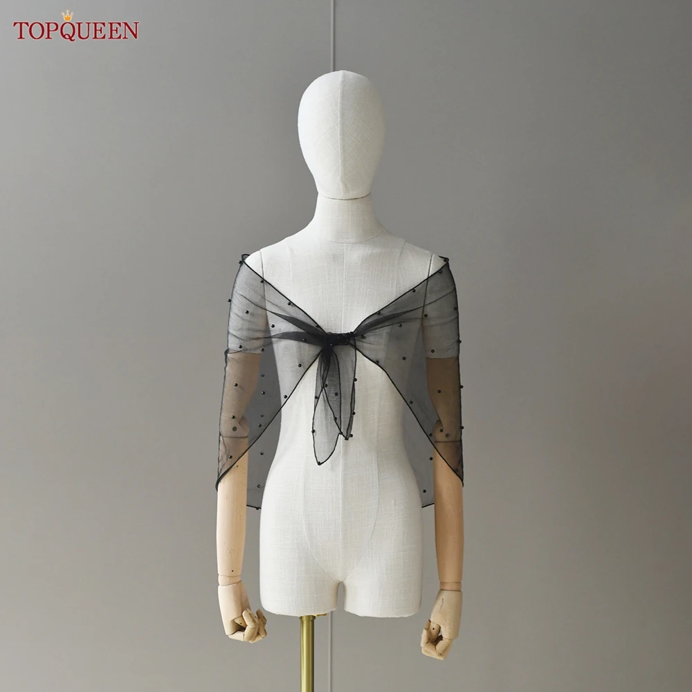 β‘Lihat KilatTOPQUEEN syal pengantin Tulle hitam, atasan Crop berlian imitasi berkilau, kardigan pernikahan Bolero Cape VG9173294.00 IDRPanas