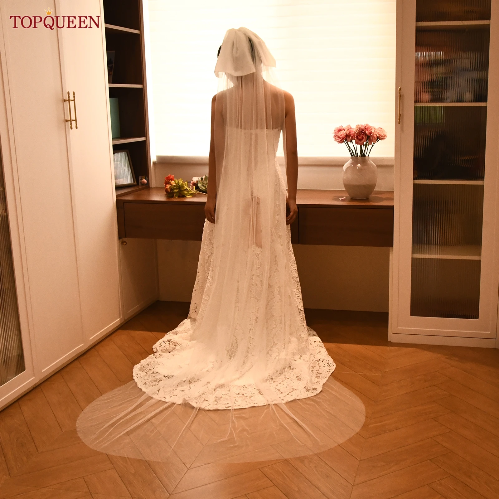 ↑TOPQUEEN V290 Kerudung Pernikahan Busur 2.5M Kerudung Pengantin Katedral Tulle Pernikahan Gading dengan Sisir Rambut untuk Pernikahan Wanita Dapat Disesuaikan - TopDealBox