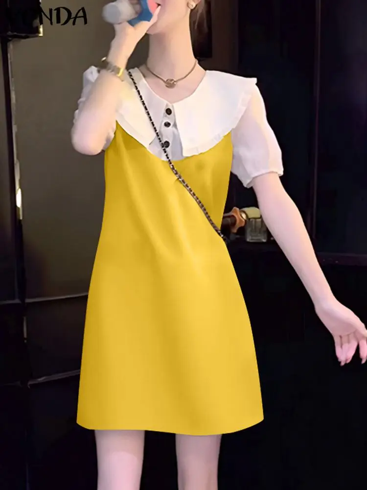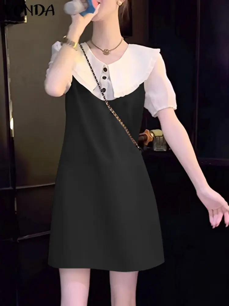 β‘Lihat KilatVONDA Gaun Mini Musim Panas Wanita 2025 Gaun Sundress Lengan Lentera Kasual Jubah Warna Solid Kerah Pelaut Patchwork Vestidos Ukuran Besar240210.00 IDRPanas