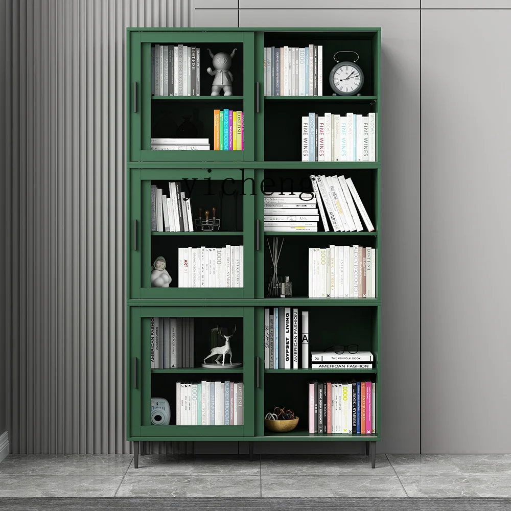 ↑ZC lemari buku kaca terintegrasi, lemari penyimpanan berdiri di lantai dinding dengan pintu geser, lemari pajangan rak buku - TopDealBox